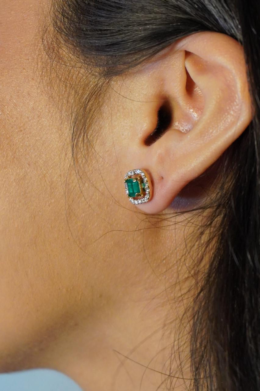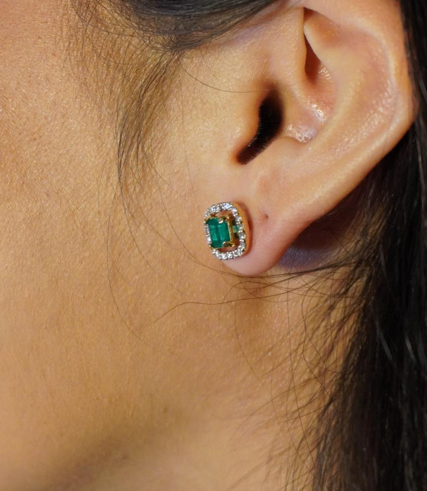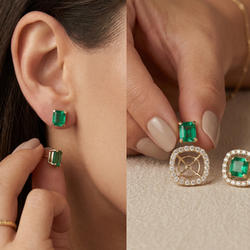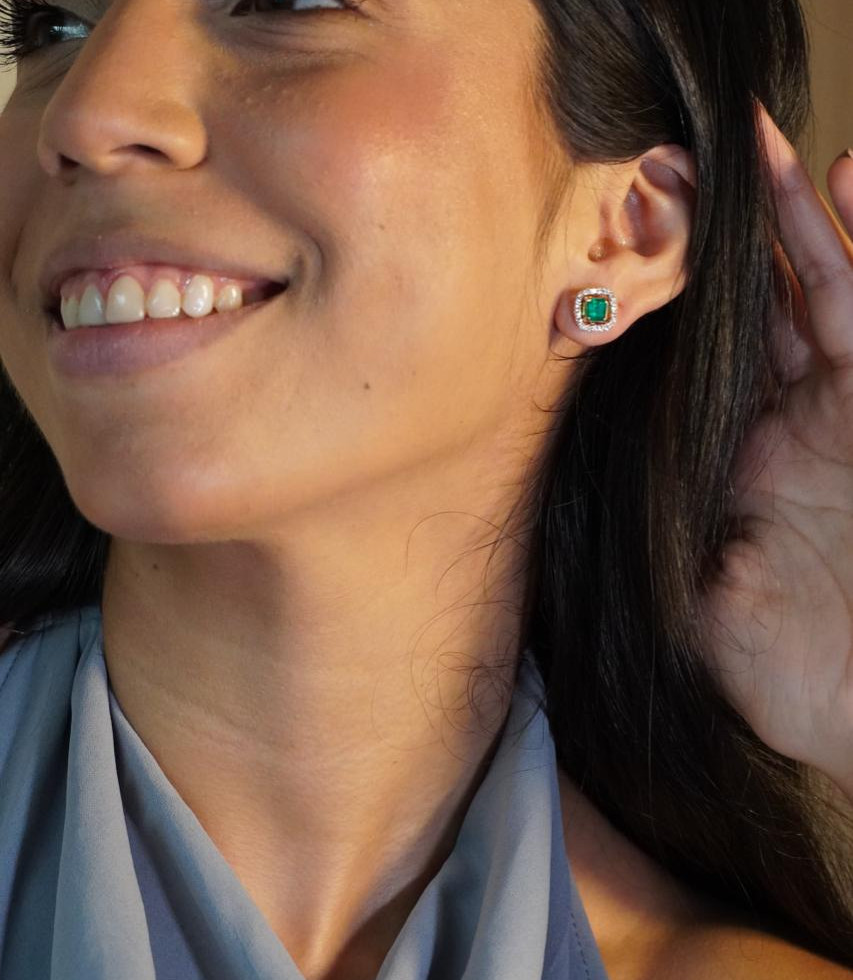 En el centro, una esmeralda de corte rectangular aporta líneas limpias, profundidad y una elegancia contemporánea. Su forma estructurada crea un contraste sofisticado con el brillo orgánico de los diamantes.